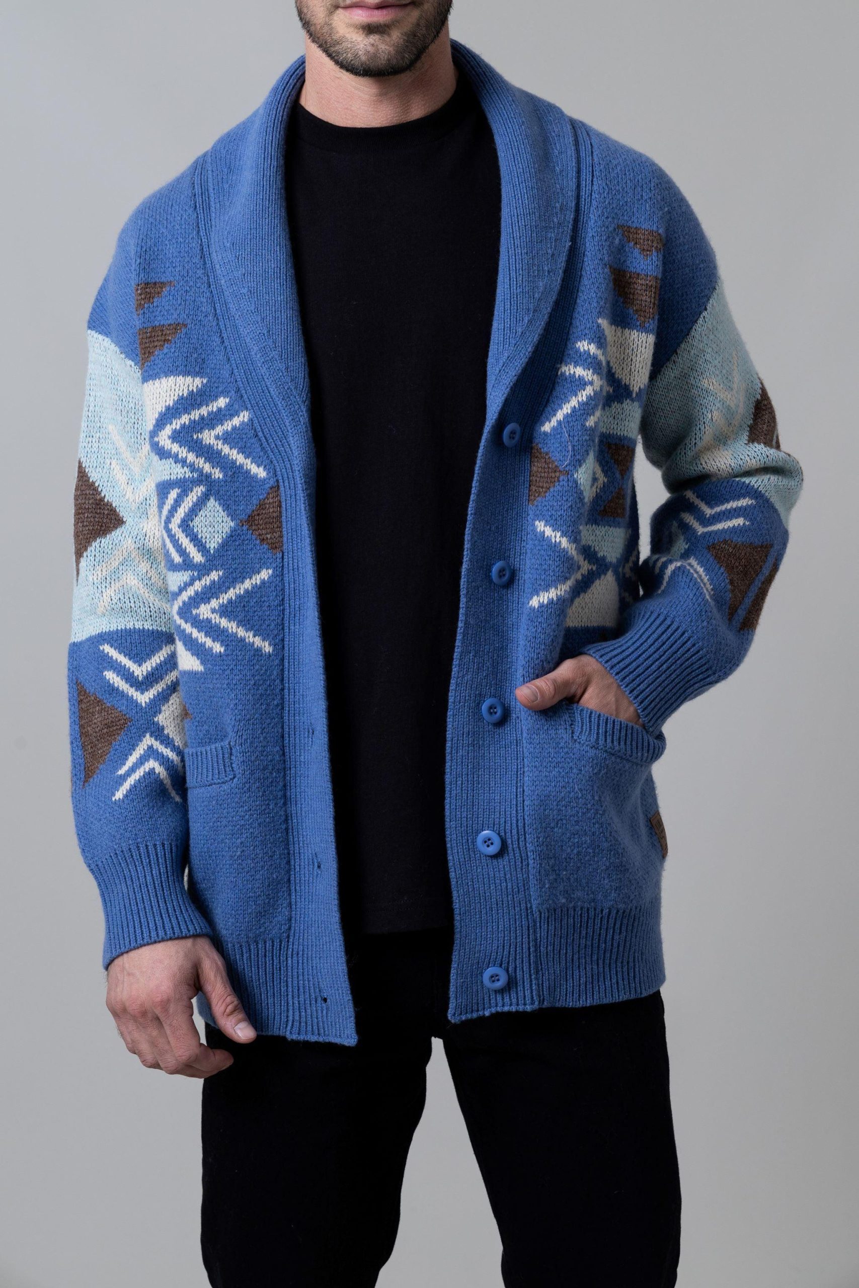 A men’s classic cardigan. Featuring two convenient pockets and button closures. it’s a timeless addition to your wardrobe. offering both style and functionality.