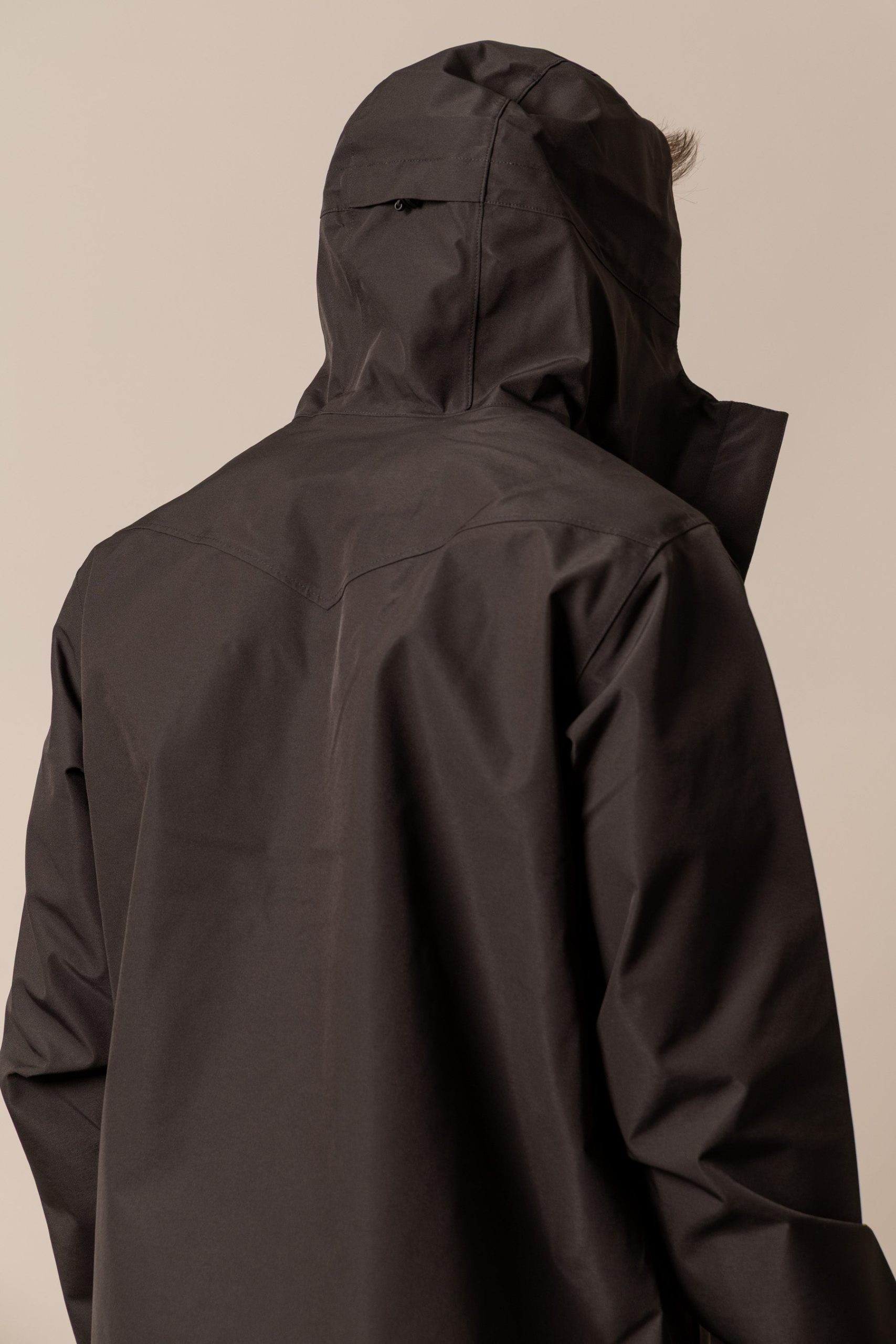 Details: Waterproof. covered zipper front. underarm vents