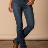 Style: Mid-Rise. Fitted Thigh. Modest Bootcut