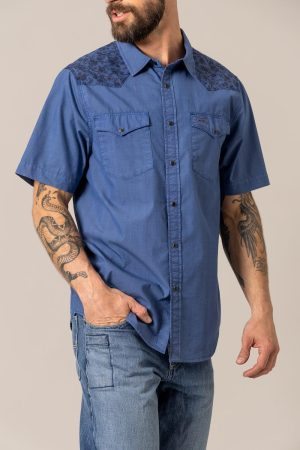 The Blackout features stretch-woven. moisture wicking Coolmax fabric. This piece is solid-colored and full of classic western details like matching pearl snap buttons down the front and closing the two chest pockets. a western yoke. and a collared neckline. The Blackout is the ultimate western work shirt.