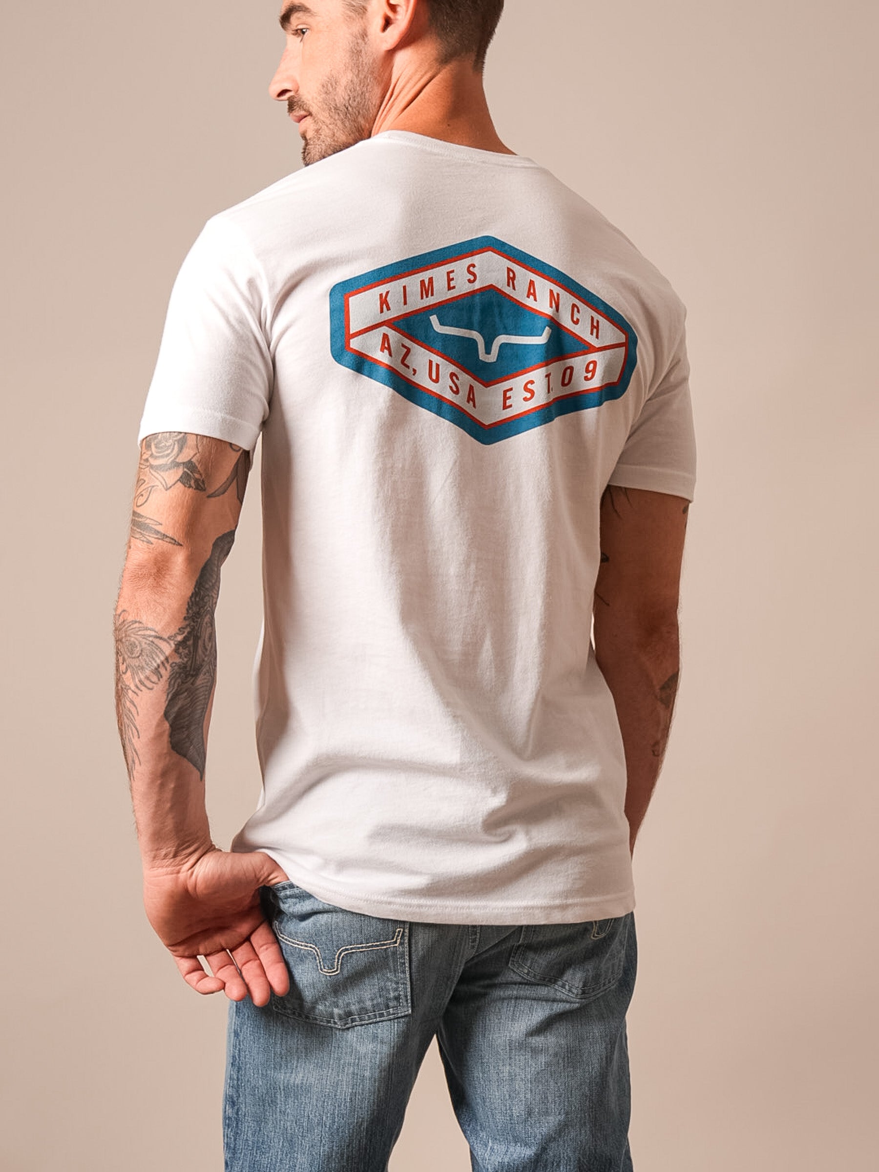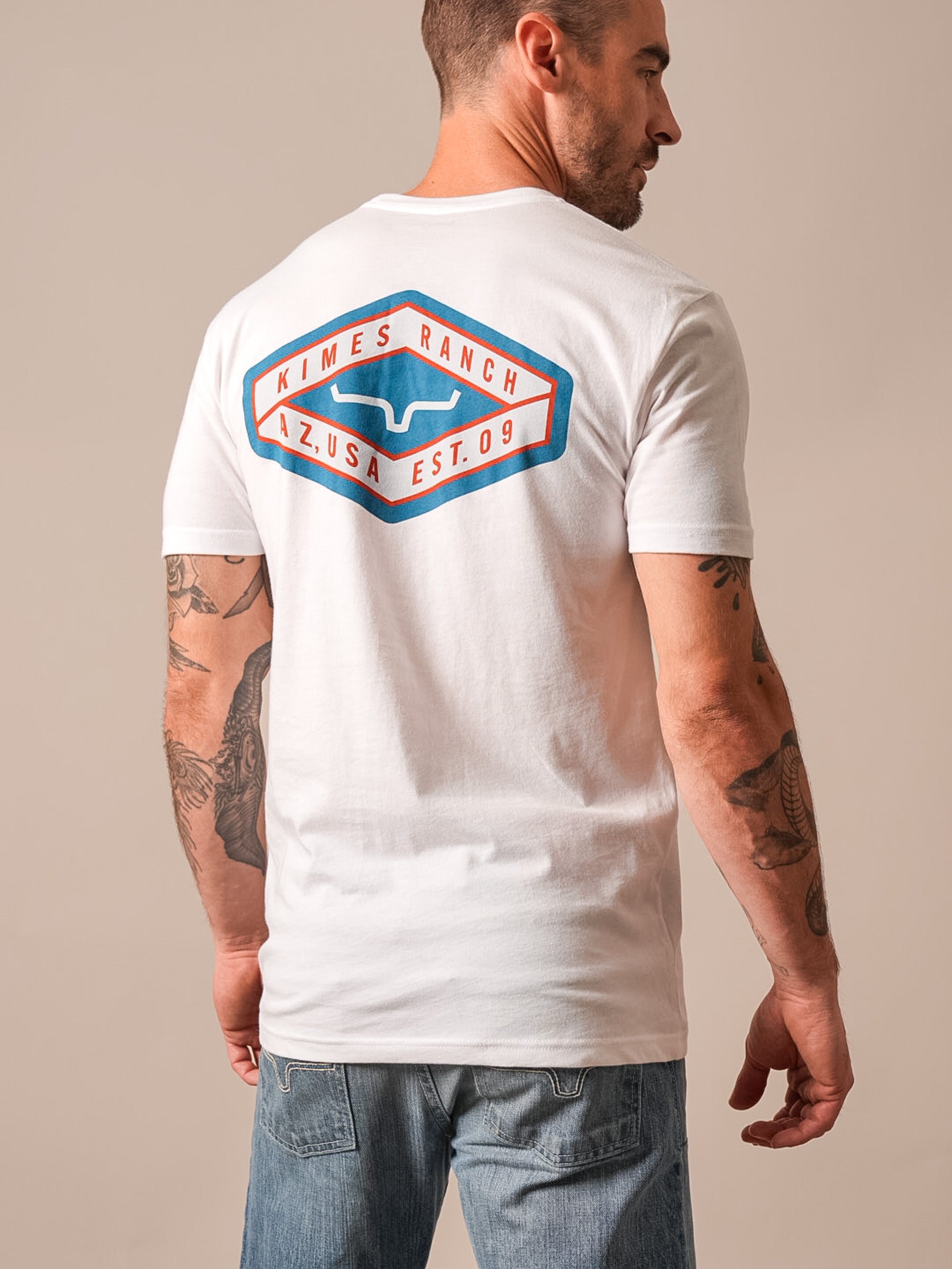 Boxer Tee brings clean. everyday western style to your wardrobe with a bold back hit that nods to rugged ranch roots. With its classic Kimes Ranch logo front and a striking retro-inspired badge graphic on the back. this tee keeps things simple in front and statement-ready behind. The pigment-washed cotton blend offers a soft. lived-in feel that wears comfortably from the first pull-on — perfect for early-morning feed runs. long days in denim. or casual nights in town. The Boxer Tee is everything you want in a staple: timeless. versatile. and unmistakably western.