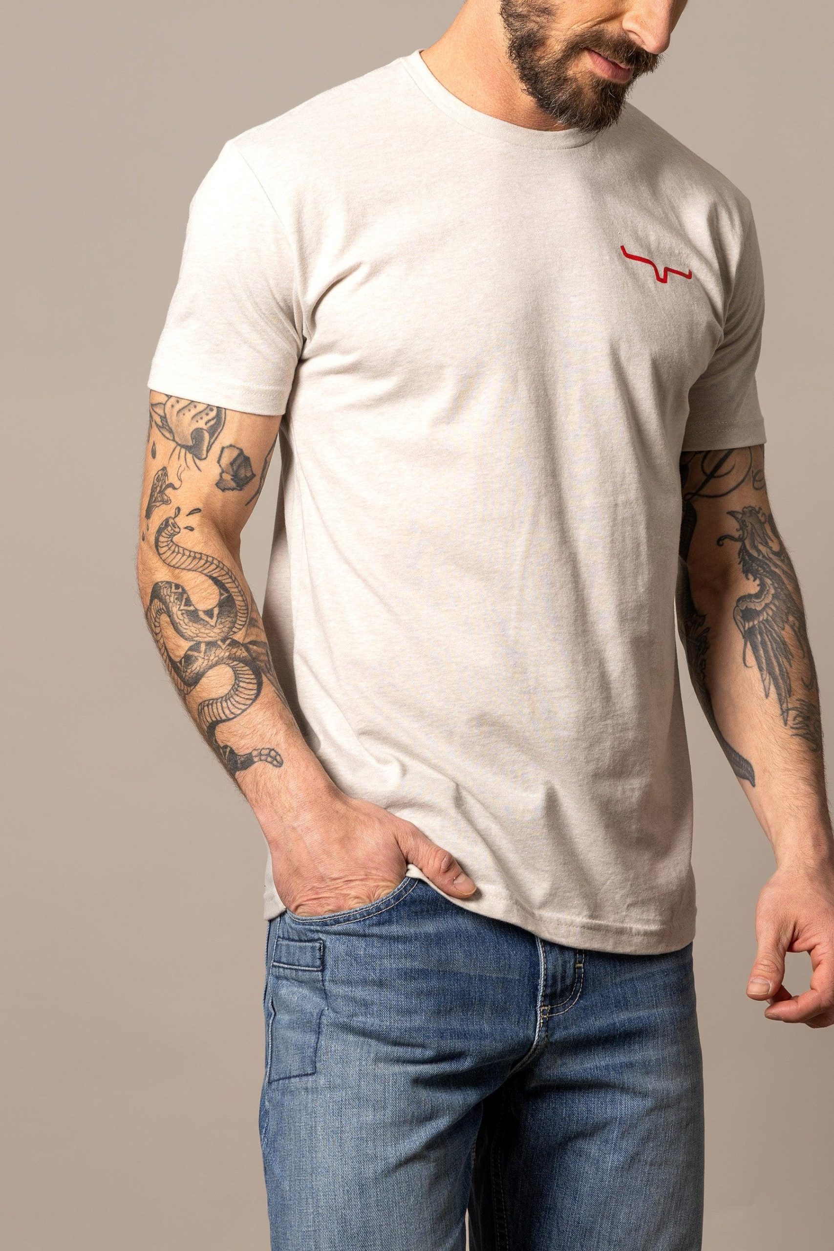 The back of this tee features a circular camo emblem with our logo and our classic horns on the front left chest. Do you live your western through the great outdoors and hunting? This t-shirt is for you!