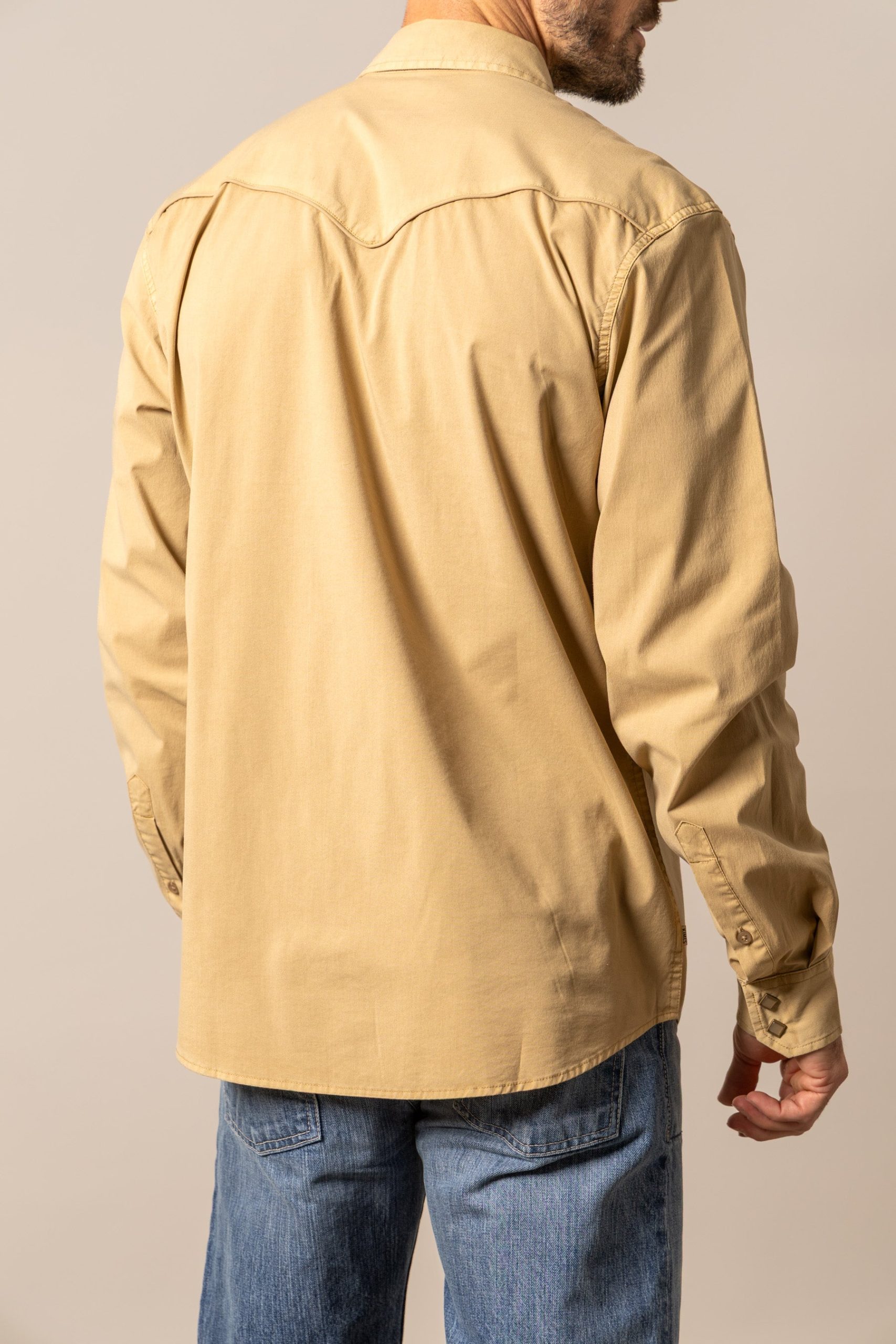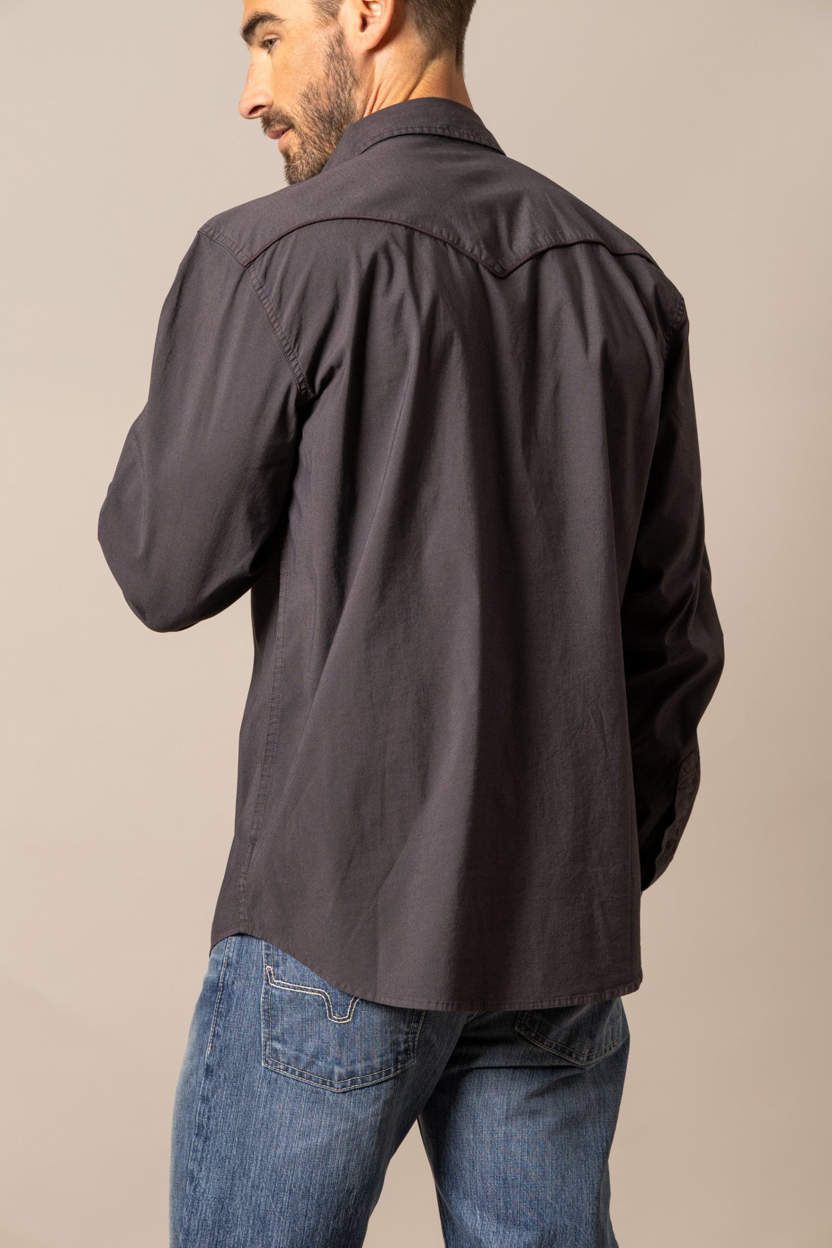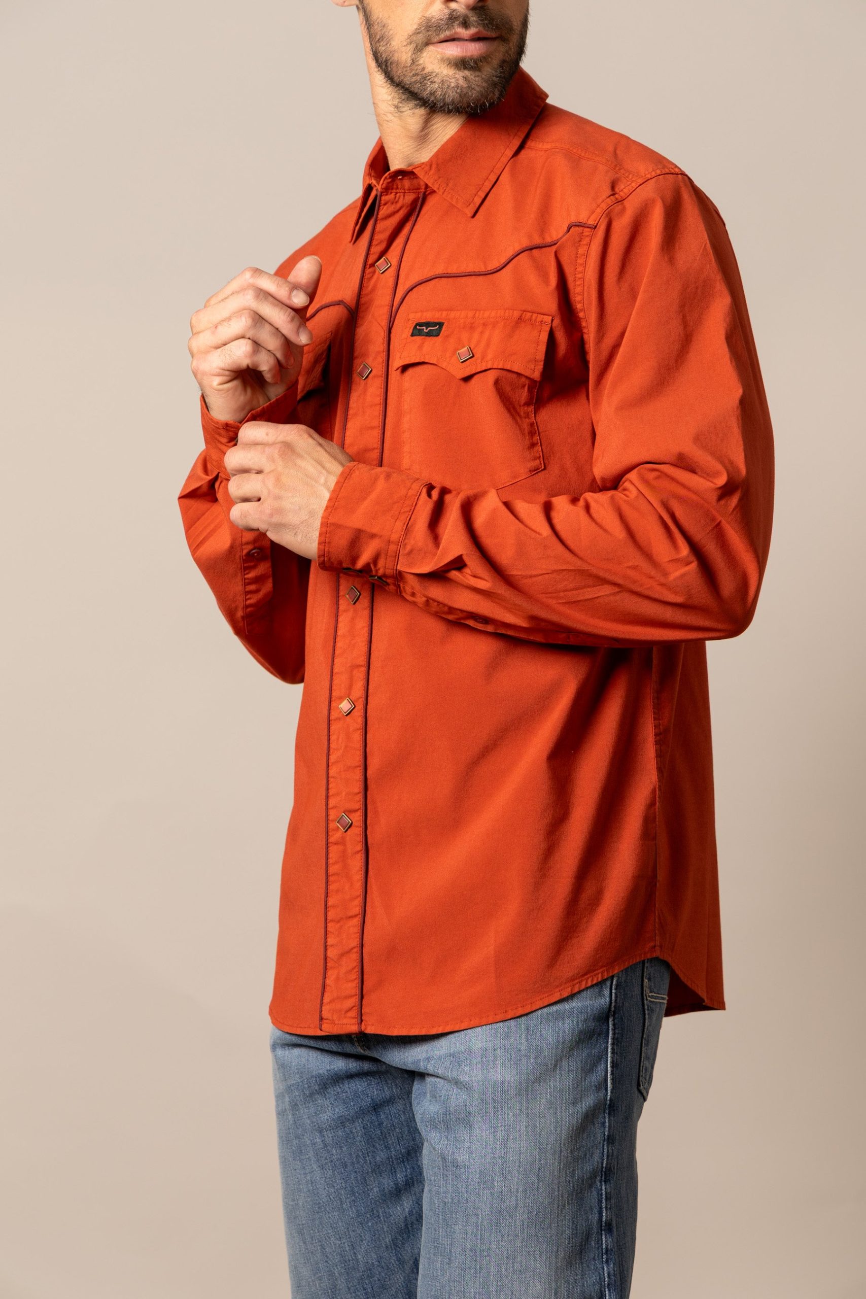 Details: Diamond pearl snap buttons. vintage inspired flap pockets. Coolmax breathability