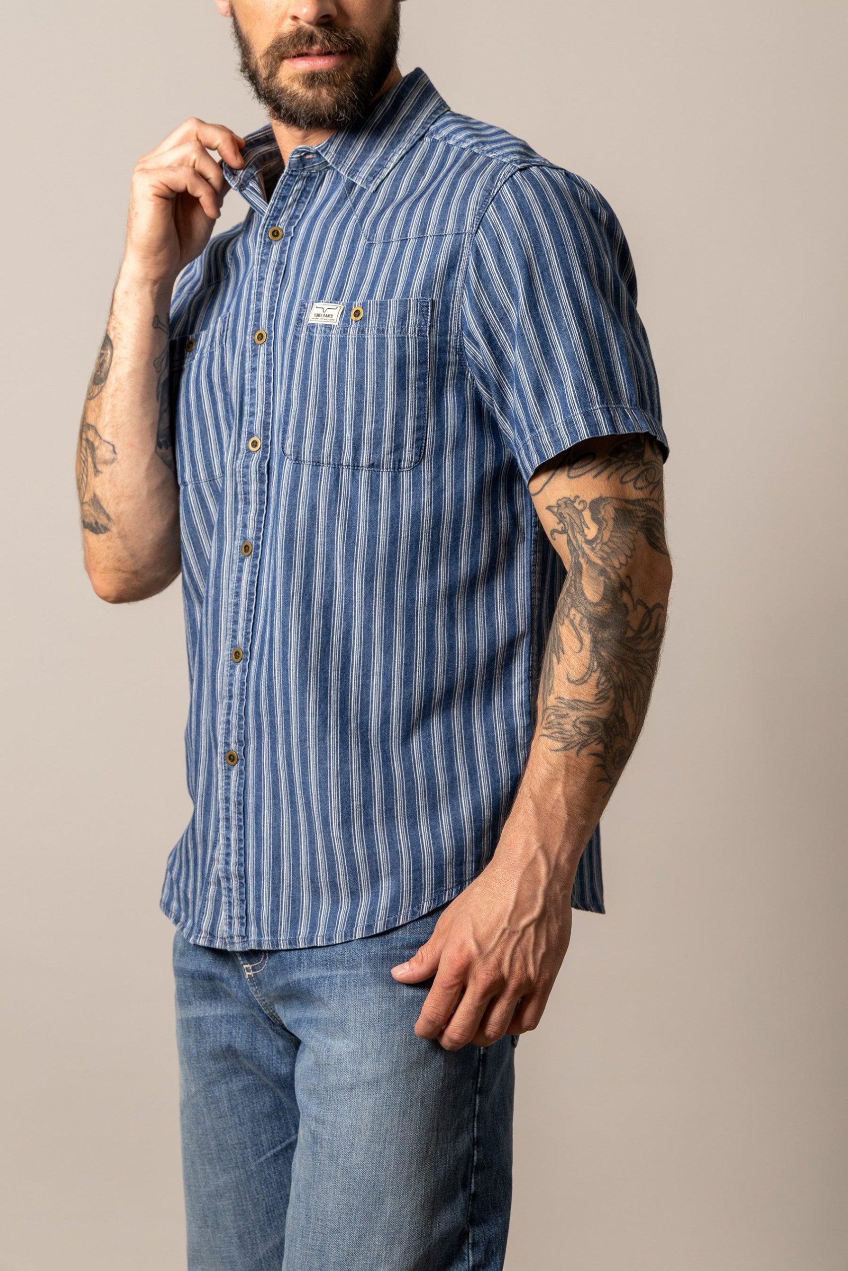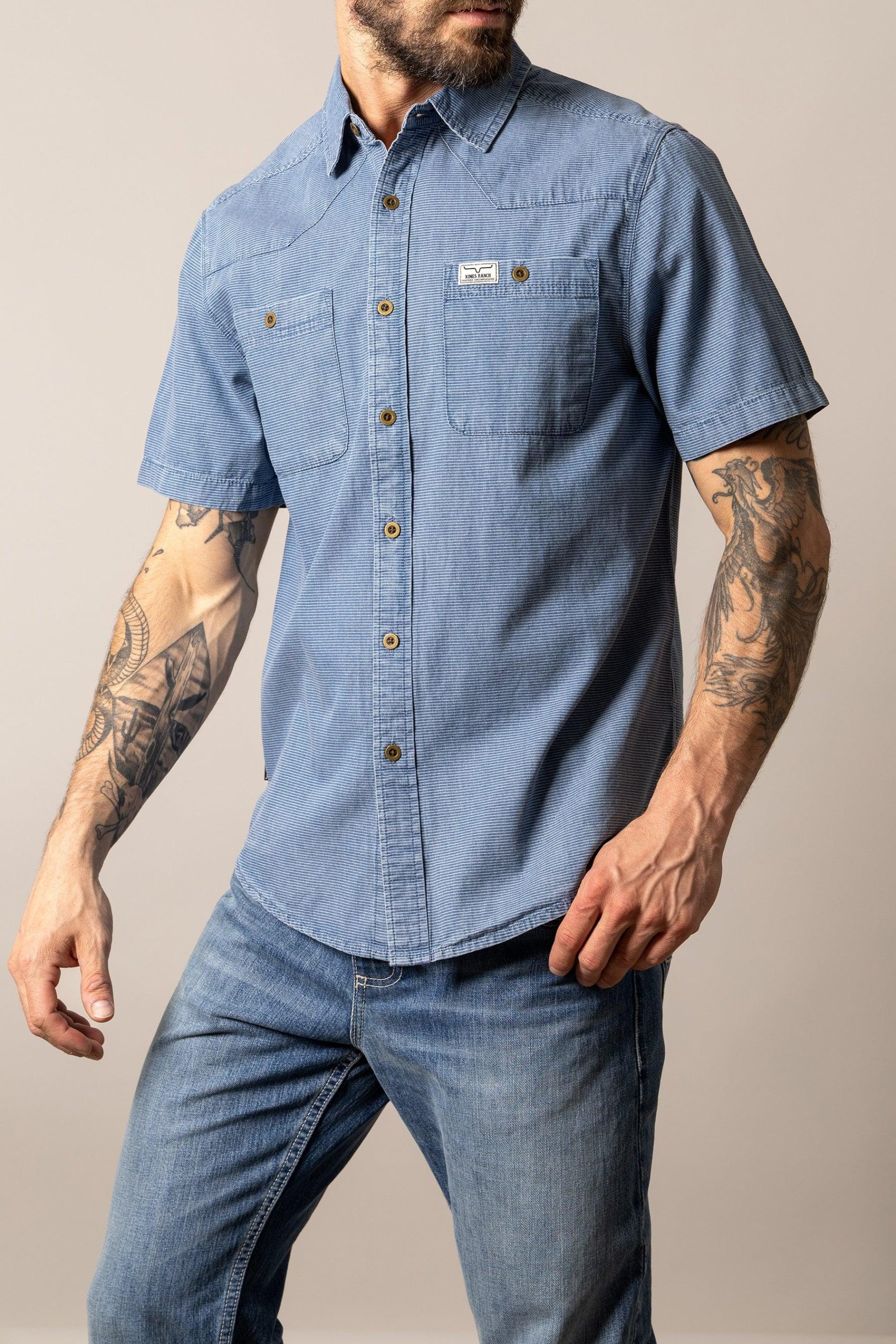 Experience timeless style and rugged comfort with the Shifter a men’s chambray short sleeve button-up. Crafted from premium denim chambray. this versatile shirt offers a distinctive look. exceptional durability. and security with its metallic buttons. Available in a variety of solid. stripe. and plaid color options. this shirt allows you to express your unique style.